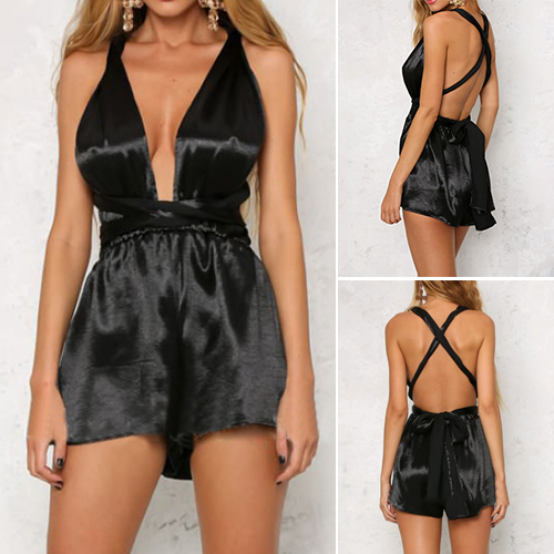 Sexy Solid Color Deep V-neck Backless Sleeveless Sling Romper