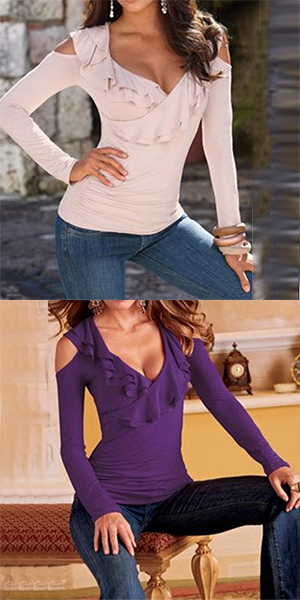 This piece is outfitted with solid color, deep v-neck, long sleeve and cold shoulder design, sexy and sultry.