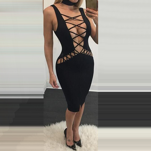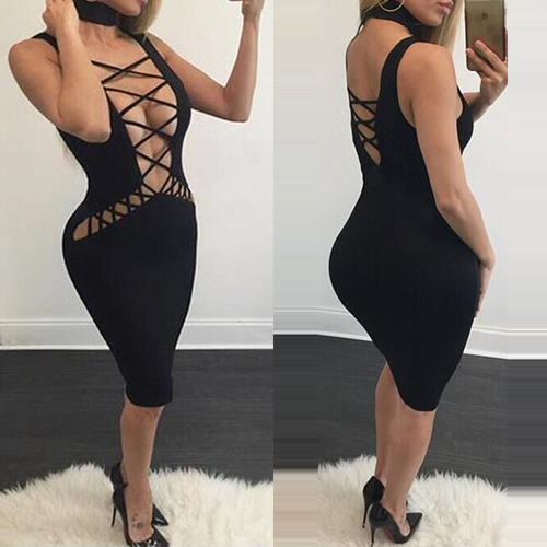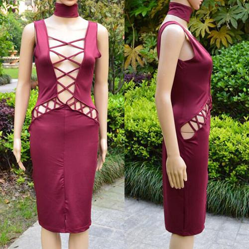 night with this dress. Super bold design style, boasting deep v-neck, sleeveless and hollow out design,