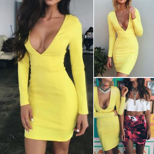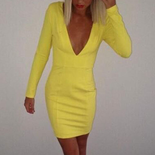long sleeve design, this solid-coloured dress can perfect show your sexy and sultry flavor.