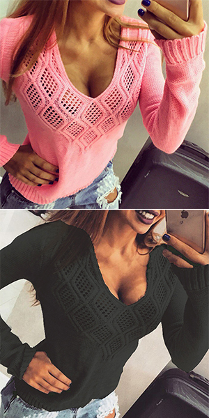 boasting v-neck, long sleeve and solid color design, this sweater shows off your sultry