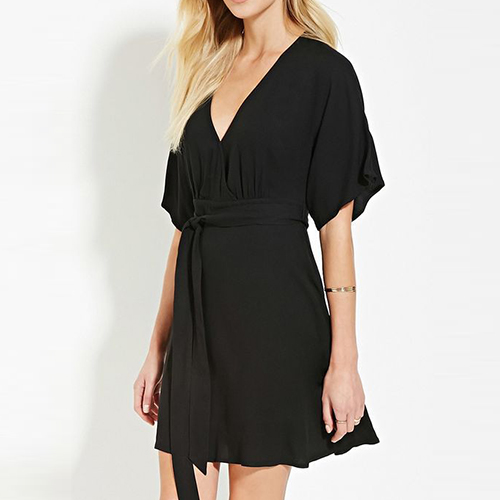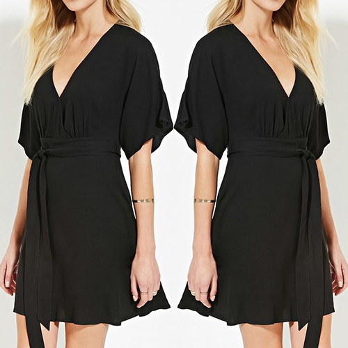 Such a simple but sheer sexy and fashion look in this dress! It features deep v-neck, short sleeve
