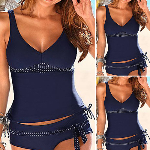 If you don't like too sexy bikini,then you can consider this swimsuit set! Solid color style,including a sleeveless v-neck