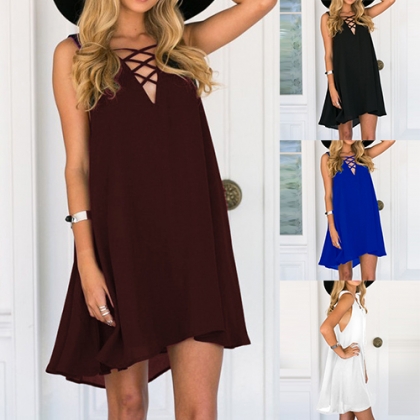 deep v-neck and sleeveless design, this solid-coloured dress bring you a good chance to show off