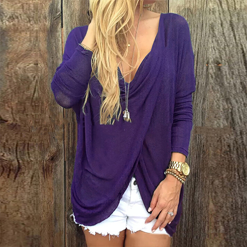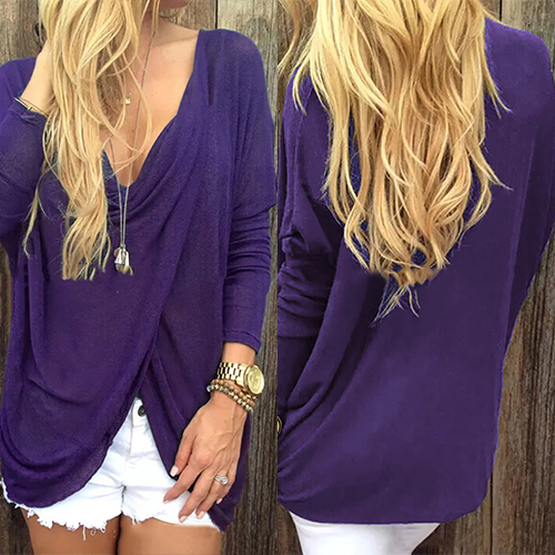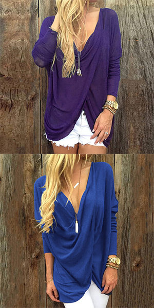Featuring soft and flowy material, with long sleeve, low-cut and front cross design, this solid-coloured