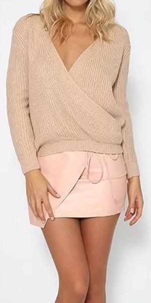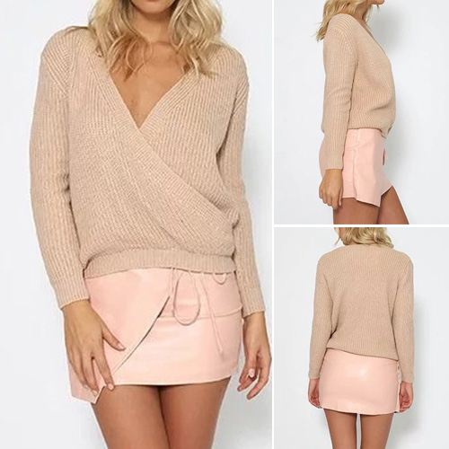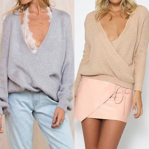 Infuse some sexy and fashion elements into this sweater by its front cross and v-neck design.