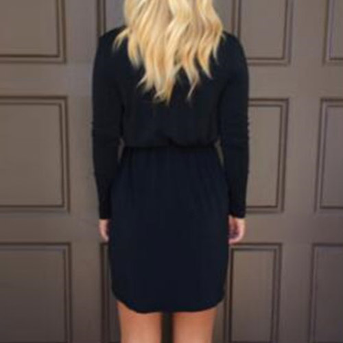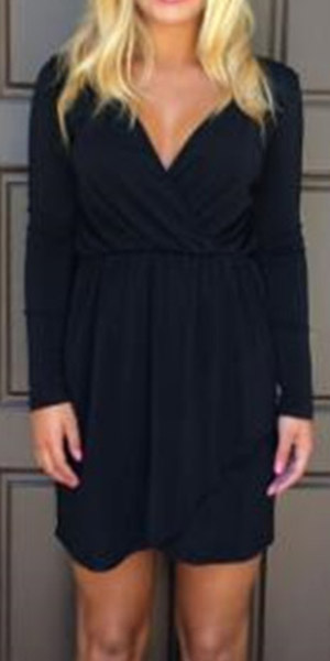 Owning a mysterious and classic black hue, with v-neck, front crossover and irregular hemline design,