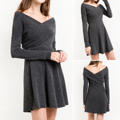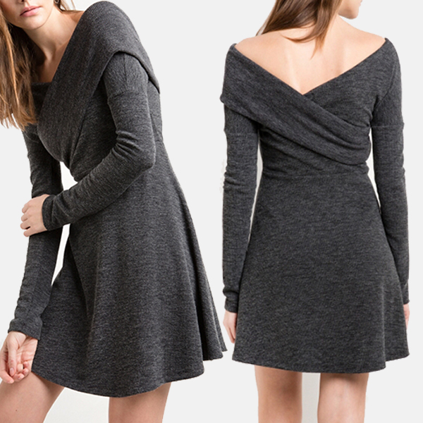 Perfect for your dating, this dress is designed with front crossover, v-neck and off shoulder, which