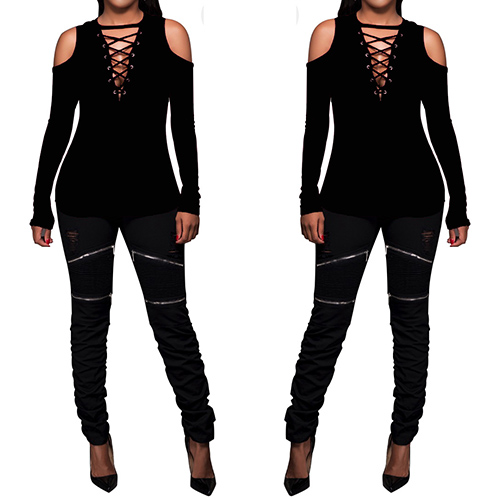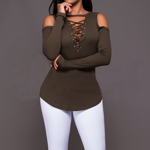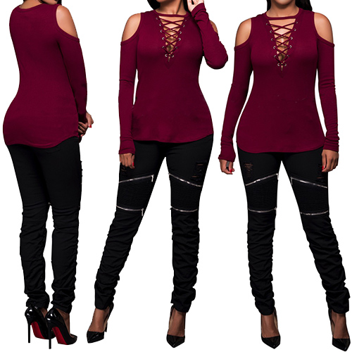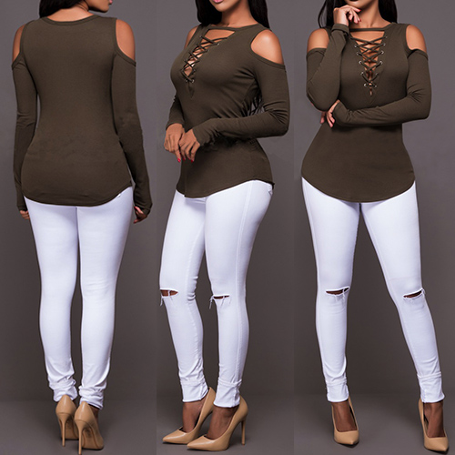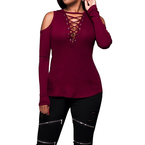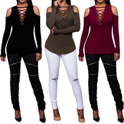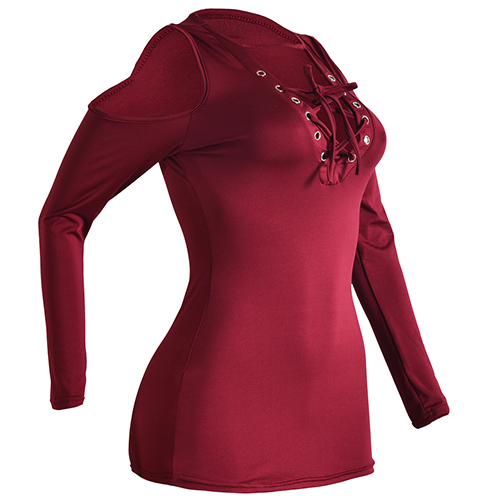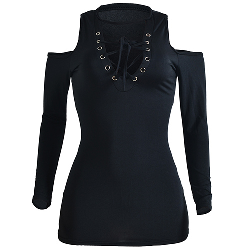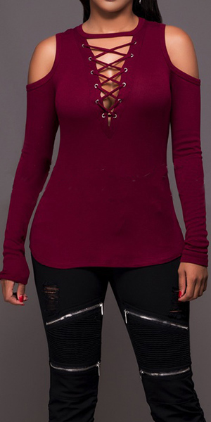 Add some sexy and seductive elements into your stylish style. Front lace-up and cold shoulder design