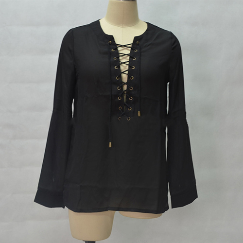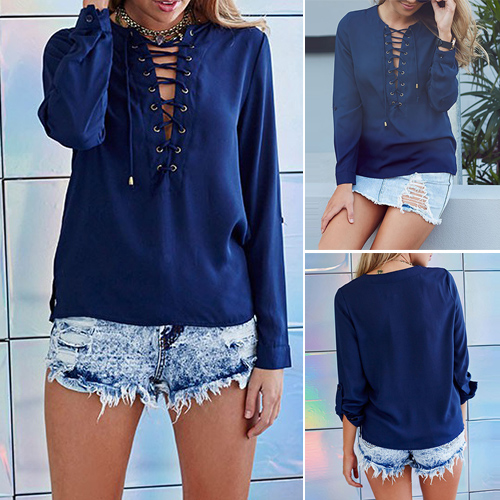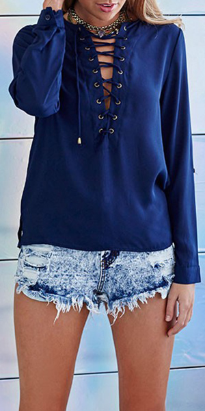 gives you day long freedom and comfort. Solid color style is paired with front lace-up, v-neck and button-tab