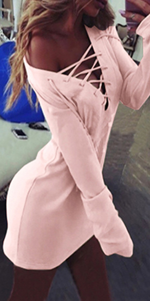 with a romantic pink color that emphasizes your feminine charm. Boasting front lace-up, v-neck and