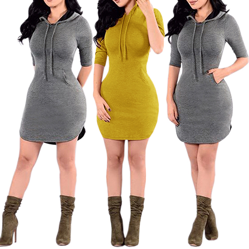 Embrace your casual days with this comfortable dress. Equipped with solid color, 3/4 sleeve and hooded design,