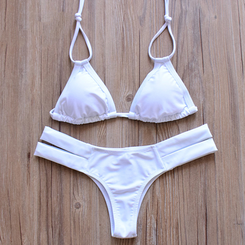 Ready for your beach trips? Then take this bikini set with you. Solid color style,adjustable strap can ensure you a long-lasting comfortable feeling.