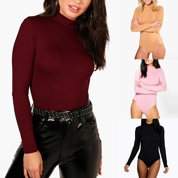This jumpsuit is a good way to show your sexy style. Solid color style, outfitted with long sleeve, high-neck style,