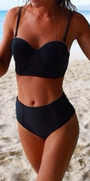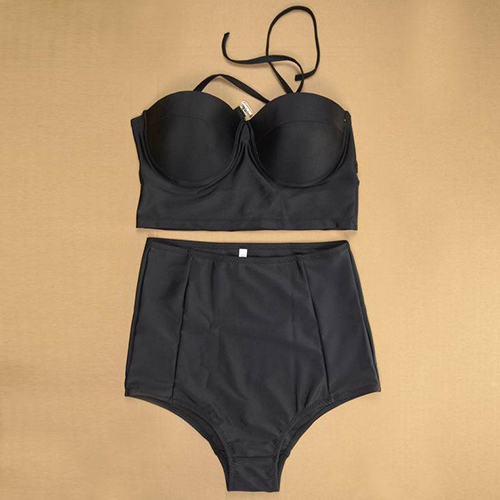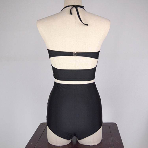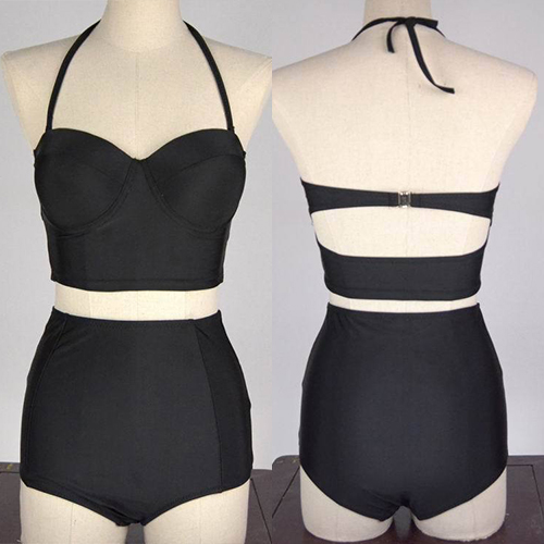 Solid color style,including a halter bra and a high waist briefs,this bikini set is perfect for your beach days.