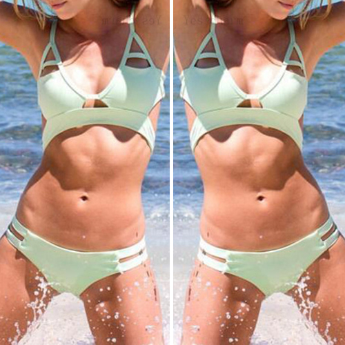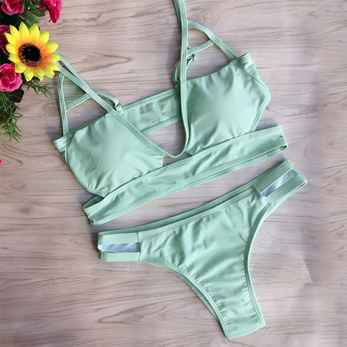 Have yourself a fun day at the pool or by the beach when you style with this bikini set. Solid color style,with hollow