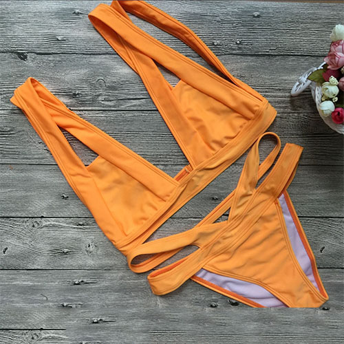 This bikini set can make you be the focus easily on the beach thanks to its bright yellow color. Hollow out design