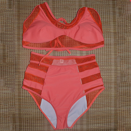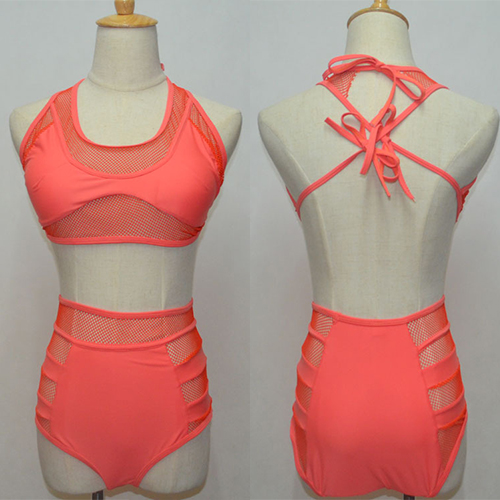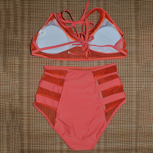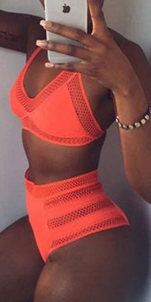 hollow out gauze spliced and high waist design makes it look so sexy. A perfect choice for your beach days.