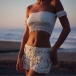 Wow,such a chic and sexy bikini top! Solid color style,hollow out knit design makes it look so alluring. Matching