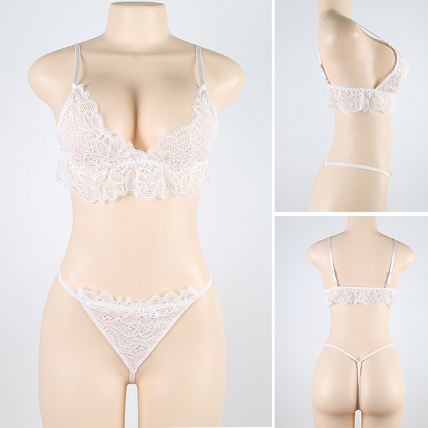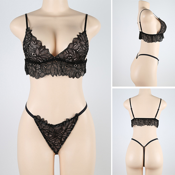 Including a lace bra and a T-back,this bra set is a good way to add a dash of sexy and feminine vibe to your look.