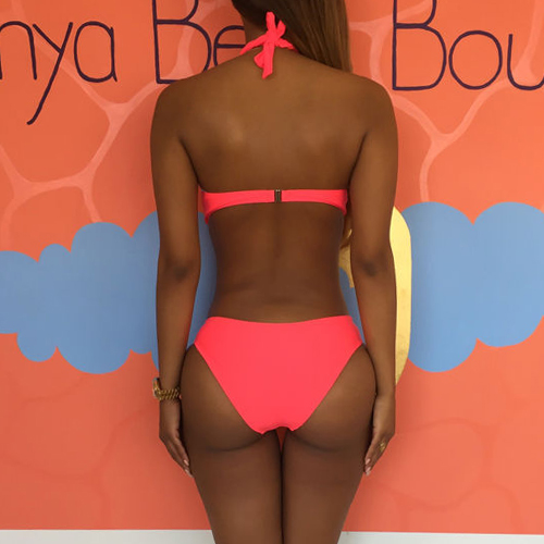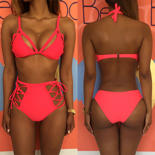 Solid color style,its hollow out lace-up design makes it more sultry. Obviously this bikini set will