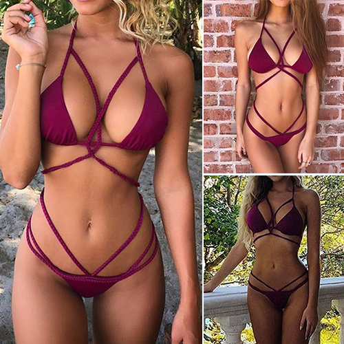 When head to the seaside,this bikini set is a good way to make you be the focus. Solid color style,its hollow out