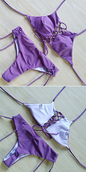 Achieve for a sexy and charming beach look by slipping into this bikini set. Solid color style,its hollow out lace-up