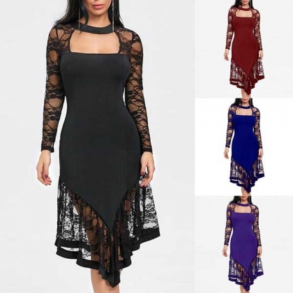 long sleeve and gauze splice,this dress also can portray your elegant and charming image!