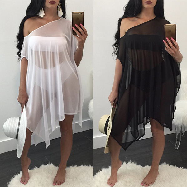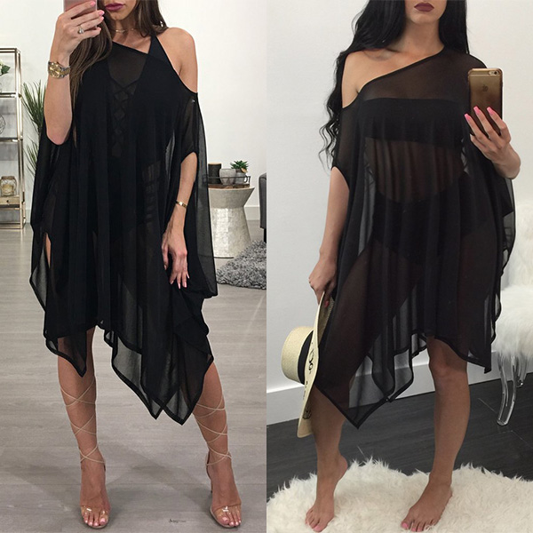 irregular hem and a loose silhouette,sexy and distinctive. We think it would be a good idea by matching with your sexy bikini set.