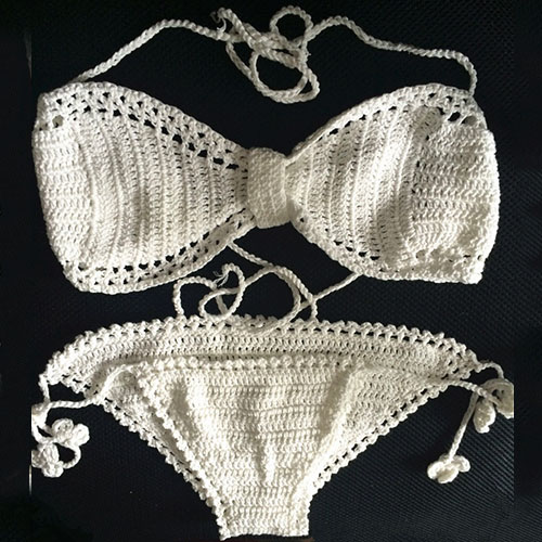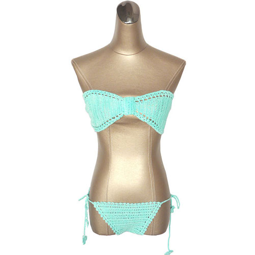 Knit style,including a bandeau bra and a triangle briefs. Bra with detachable shoulder straps. When