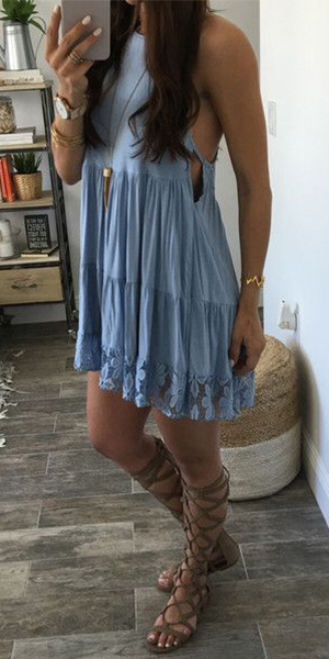 You are the real owner of this sling dress. This dress is so beautiful due to your presence. Hollow out style,