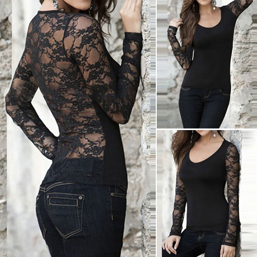 Lace spliced style, with scoop neck, long sleeve and hollow out design, it thoroughly accentuates your femininity.
