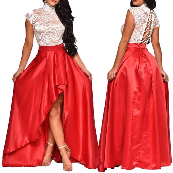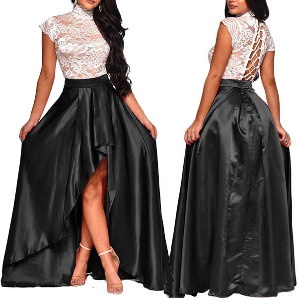 XL : Bust : 92cm(36.22"); Waist : 86cm(33.86"); Sleeve : 12cm(4.72"); Top Length : 62cm(24.41"); Skirt Length : 109cm(42.91");