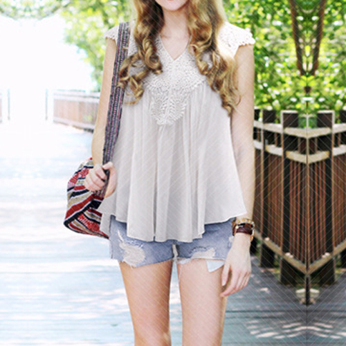 spliced, v-neck and cap sleeve design, this pleated tops would be bound to bring you a sweet look.
