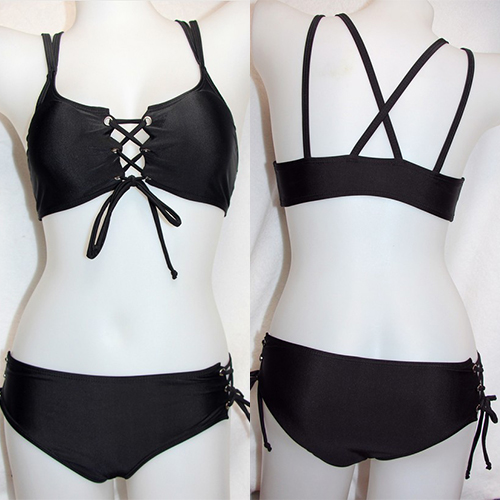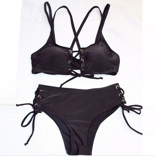 Brighten your summer beach days by wearing this sexy bikini set! Solid color style,with lace-up design