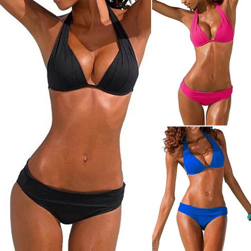Solid color style,including a halter bra and a low-waist briefs,its cozy fabric and adjustable lace-up design can ensure you