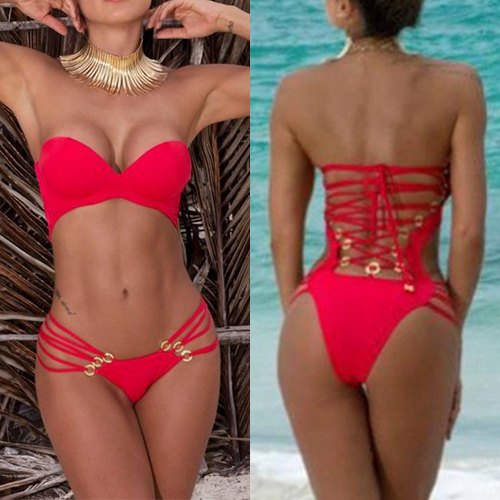 sexy and sultry. Decorated with metal ring makes it more chic. A must-have item for your seaside trip.