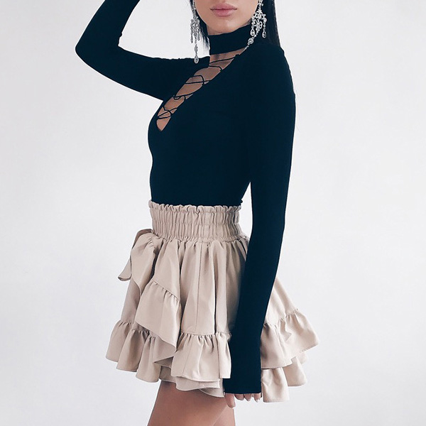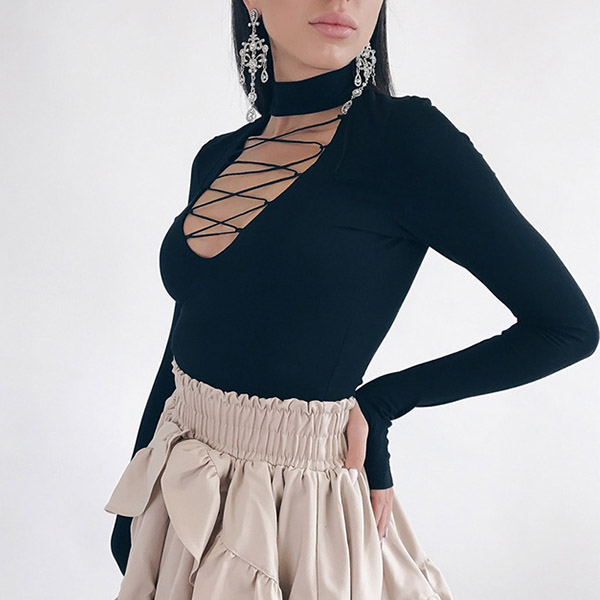 yet flattering black tone,the crossover lace-up design at neck part makes it look so sexy and distinctive.