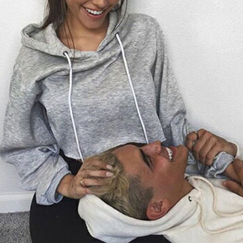 Create a casual and sexy look with this crop sweatshirt. Styled with solid color, long sleeve and