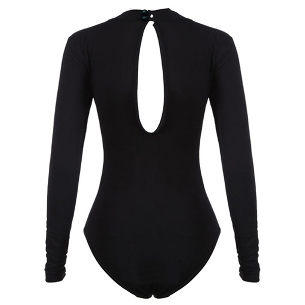 mysterious black tone,finished with long sleeve,round neck and a tight silhouette,this sexy piece of course