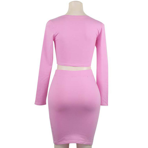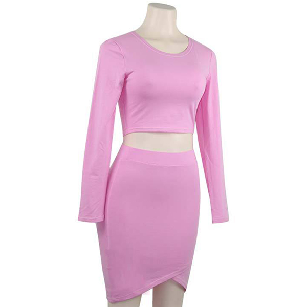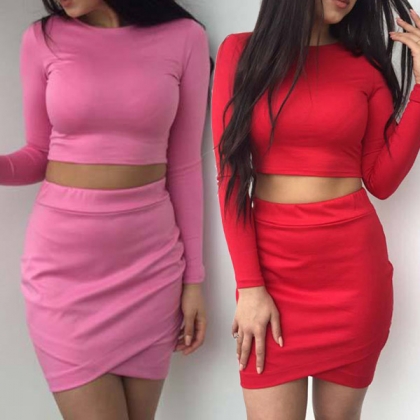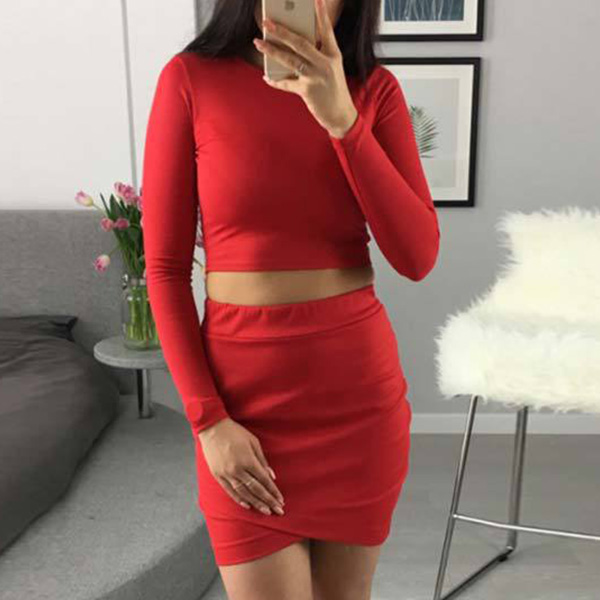 including a long sleeve round neck crop top and a skirt,this two-piece set not only can showcase your sexy side,
