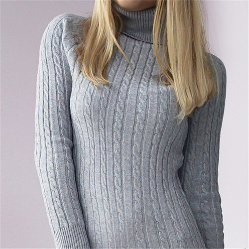 thoroughly exude. A slim-fitting silhouette is accompanied with turtleneck, long sleeve and