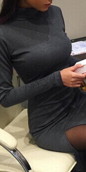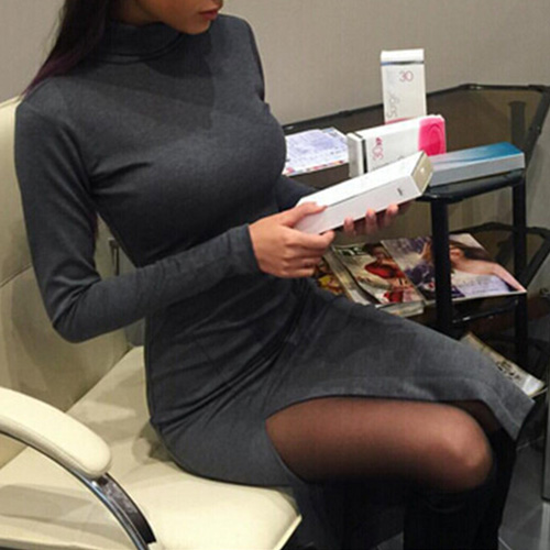 long sleeve, turtleneck and side slit design, this dress can provide a best place for your rest or play.