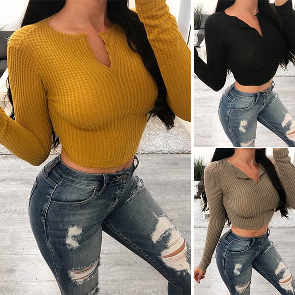 with long sleeve and v-neck design,simple,cozy yet sexy. We suggest you matching with your high waist