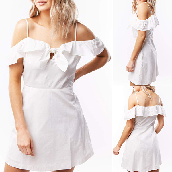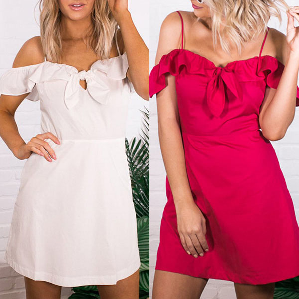Sexy Solid Color Lotus Spliced with Bowknot Off-shoulder Slim Fit Dress
