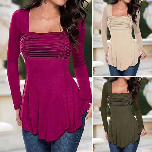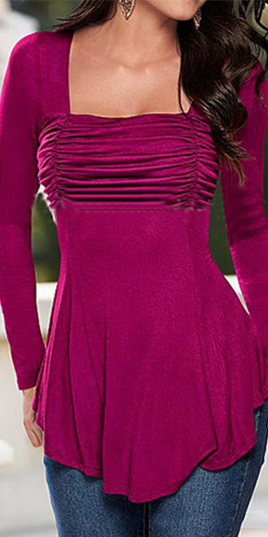 tops. It is outfitted with low-cut, long sleeve and crinkle design, which can better set off your