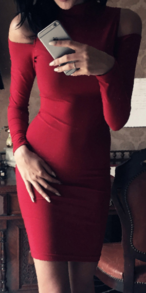 A feminine creation, this dress is equipped with mock neck, cold shoulder and long sleeve design, which