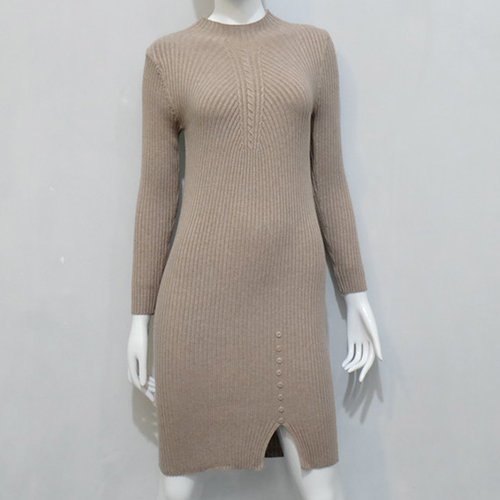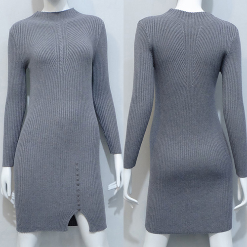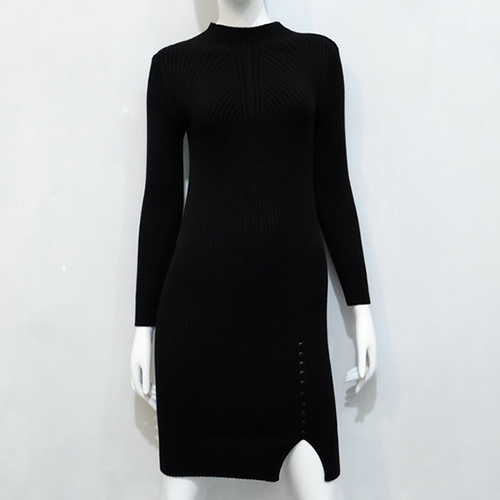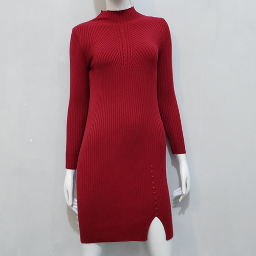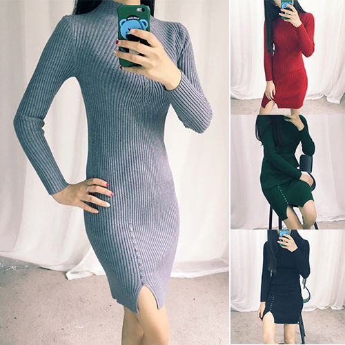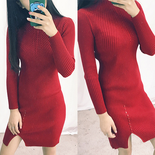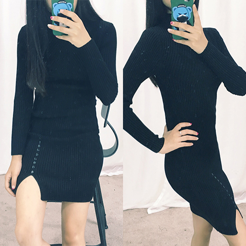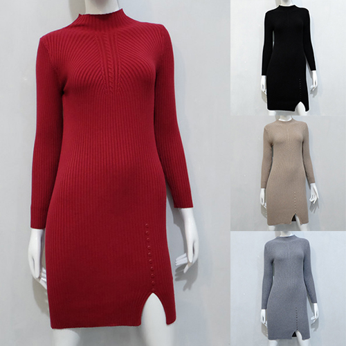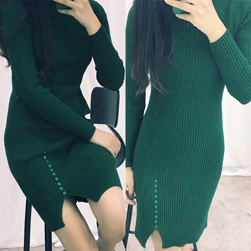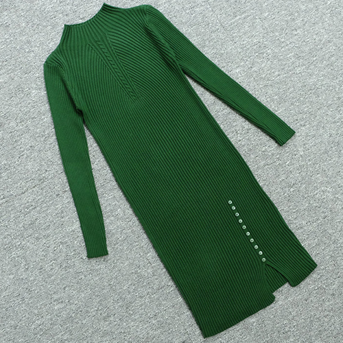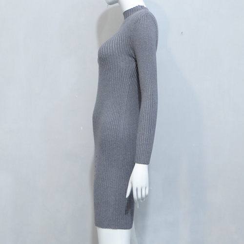 Sexy Solid Color Mock Neck Long Sleeve Cut-out Hemline Knit Dress