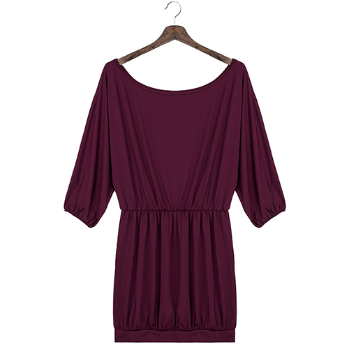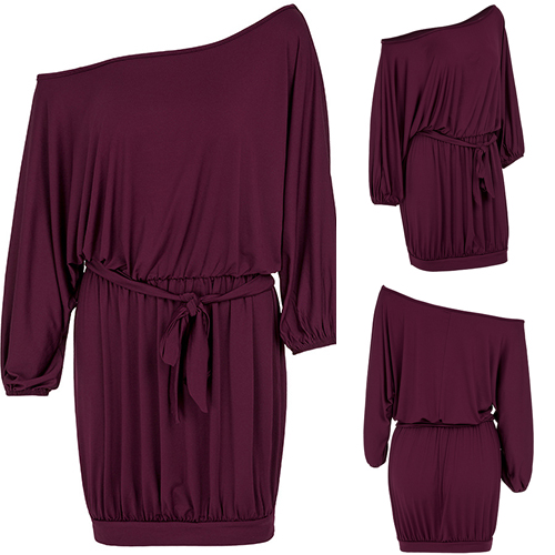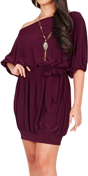 Keep your stunning beauty in this dress. Boasting a solid color style, with oblique shoulder, bat sleeve and