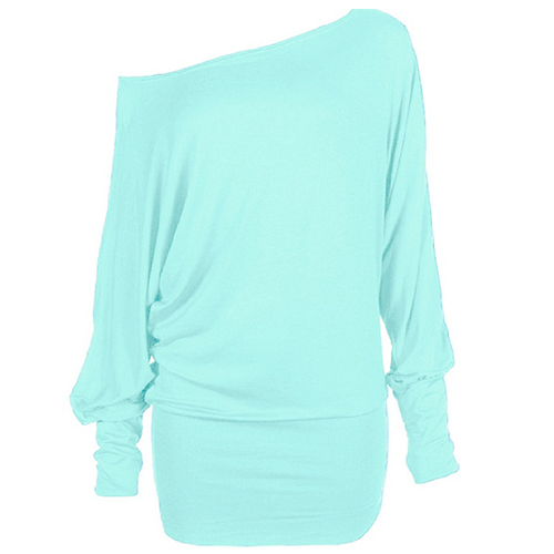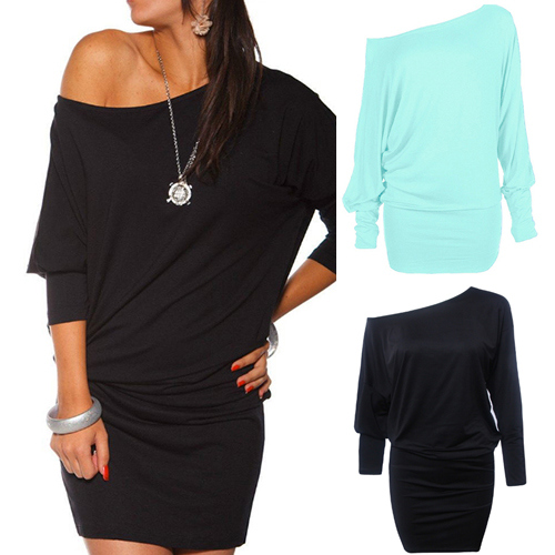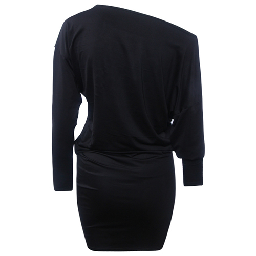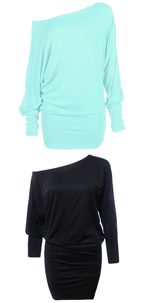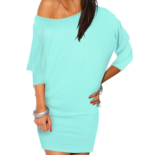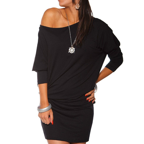 Slip into this dress for a cozy and stylish style. It features oblique shoulder, half sleeve and solid color